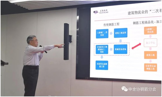 中國鋼結(jié)構(gòu)協(xié)會鋼筋焊網(wǎng)分會副理事長、星聯(lián)鋼網(wǎng)(深圳)有限公司董事長林振倫;中金協(xié)鋼筋分會副會長、寧夏鳳凰城智能制造有限公司總經(jīng)理韓昱;中金協(xié)鋼筋分會理事單位、北京美建華宇金屬制品有限公司董事長李國慶;分別就《焊網(wǎng)在建筑工程中的應(yīng)用現(xiàn)狀與趨勢分析》《三級鋼擴(kuò)展技術(shù)-500及高強(qiáng)鋼筋使用》《鋼筋集中加工現(xiàn)狀分析》《如何通過鋼筋加工來推動焊網(wǎng)在建筑領(lǐng)域的應(yīng)用,達(dá)到鋼筋加工與焊網(wǎng)的有效結(jié)合》等幾個(gè)課題進(jìn)行了不同的演講。