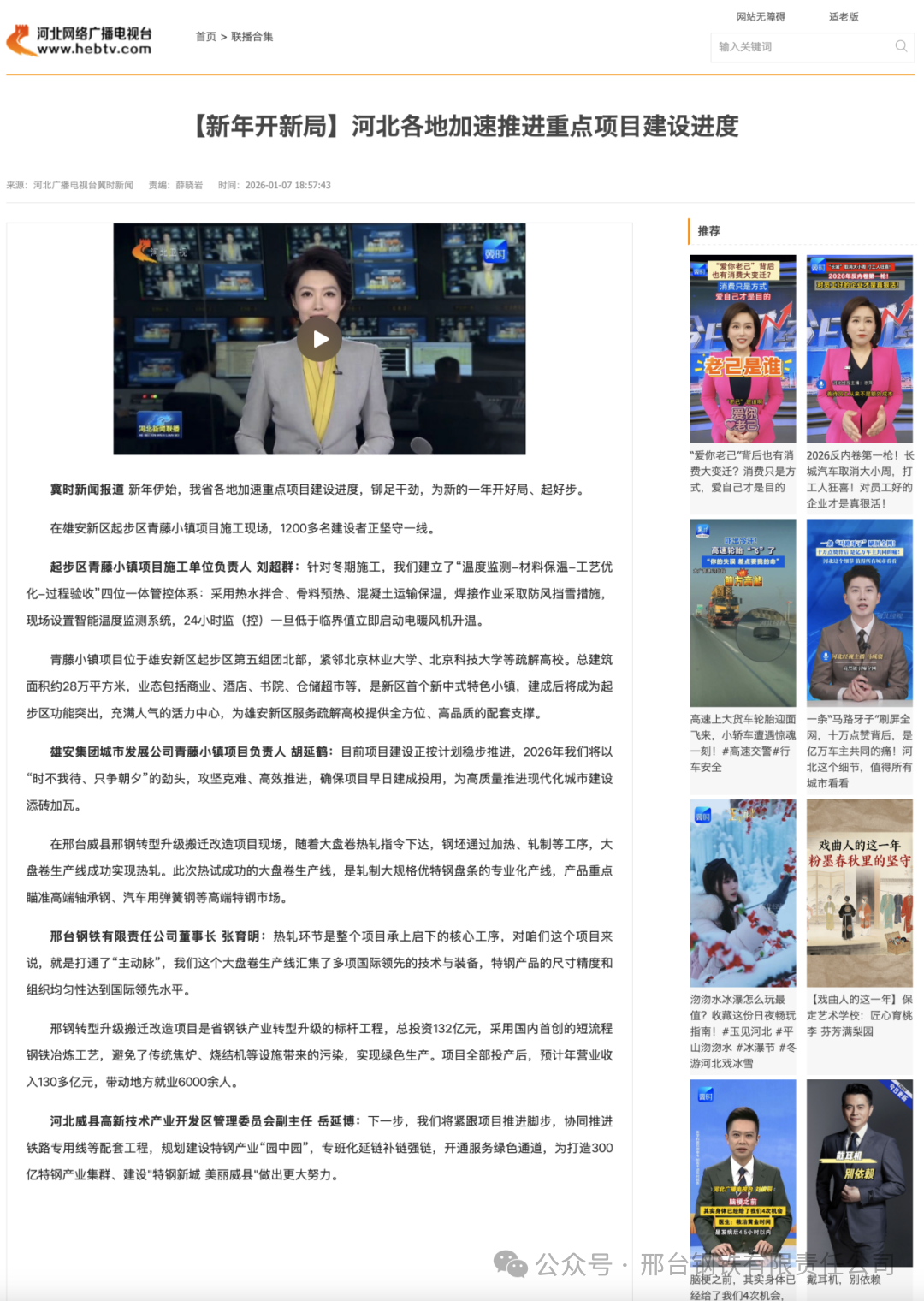 邢臺鋼鐵有限責(zé)任公司董事長 張育明:熱軋環(huán)節(jié)是整個(gè)項(xiàng)目承上啟下的核心工序,對咱們這個(gè)項(xiàng)目來說,就是打通了“主動(dòng)脈”,我們這個(gè)大盤卷生產(chǎn)線匯集了多項(xiàng)國際領(lǐng)先的技術(shù)與裝備,特鋼產(chǎn)品的尺寸精度和組織均勻性達(dá)到國際領(lǐng)先水平。